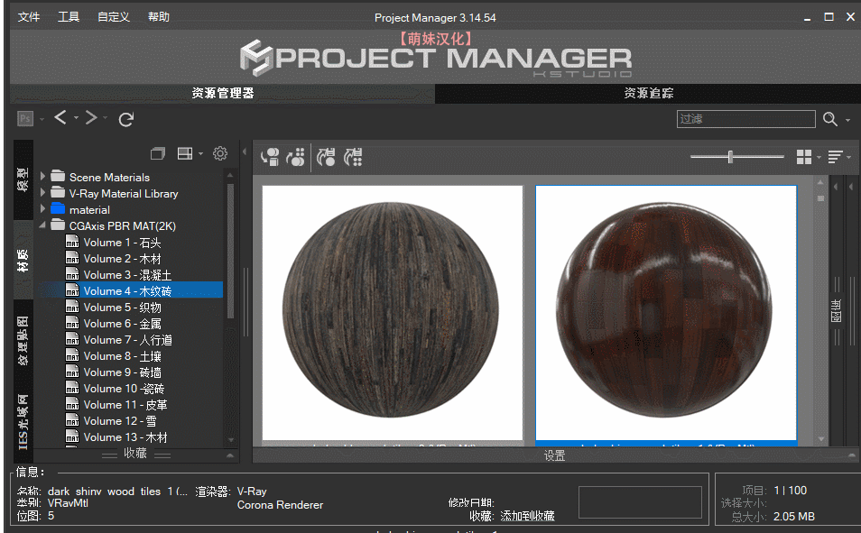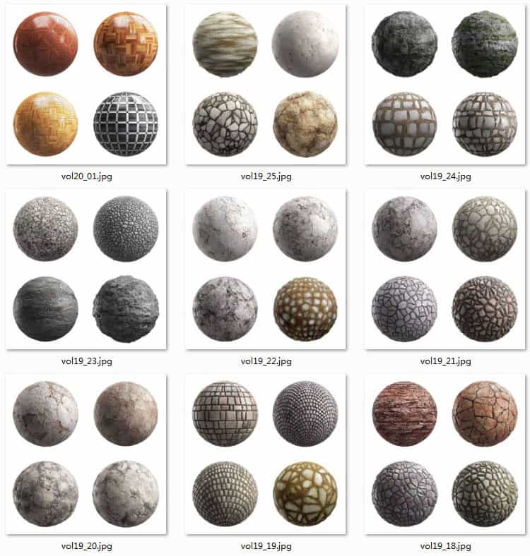 本材质包包含100组PBR材质,贴图全部转换为2K,方便使用。如需高清贴图(4K、8K),请自行下载CGAxis PBR Textures贴图包。