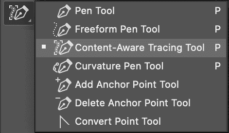 要开始试用此新工具,请首先转到“首选项”>“技术预览”以启用它。然后,重新启动 Photoshop。您现在可以在 Photoshop 工具栏中的钢笔工具组下找到内容感知描摹工具。