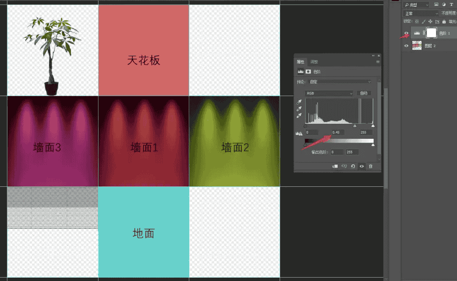 调入元素,并加色阶压暗(自行调节数值),合适后合并所有图层存储