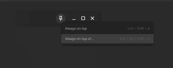 启用标题栏后,只需单击“始终在最上面”按钮并选择“始终在最上面…”(或使用键盘快捷键),然后单击要附加 PureRef 的应用程序窗口。再次单击按钮(或键盘快捷键)即可分离