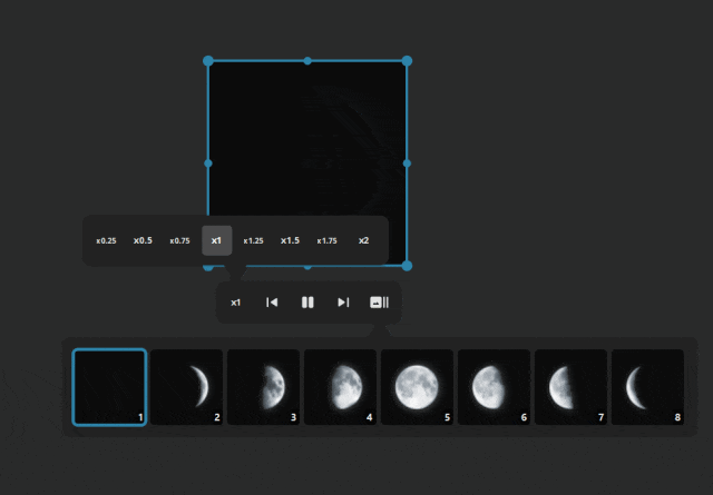最受欢迎的功能之一就在这里:全面支持 GIF!播放、暂停、调整速度、前后拖动、逐帧并查看剪辑中的帧编号。通过复制粘贴或将帧从时间线拖到板上,轻松提取单个帧。此外,可以同时播放多个 GIF!