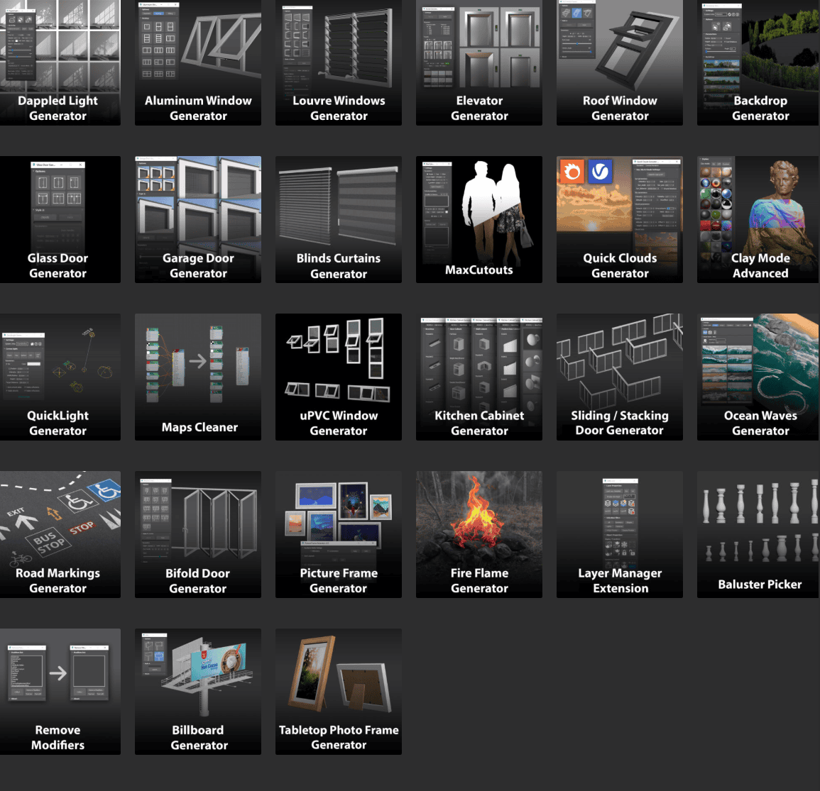 3DS MAX建筑门窗橱柜生成器插件合集 ArchVizTools Generators Collection for 3ds Max 2018-2026